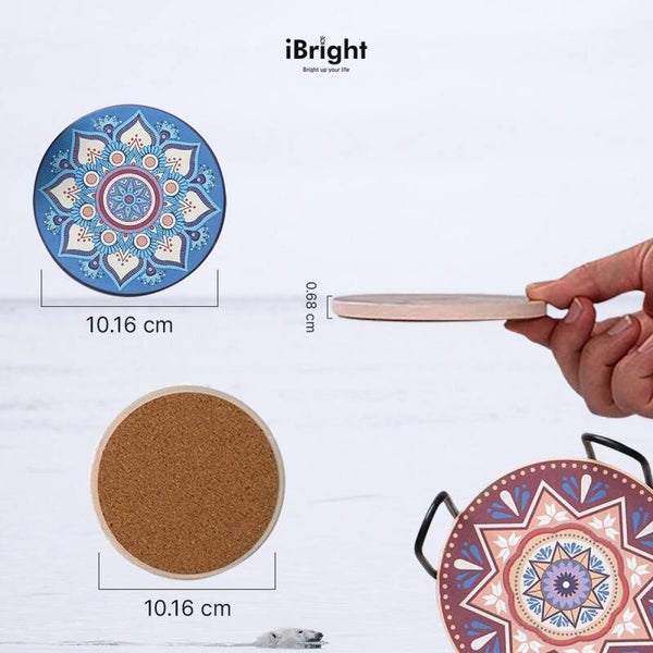 U kunt u glazen en mokken zonder te aarzelen op u tafel neerzetten, want doordat de onderkant van de onderzetter zorgvuldig met kurk is aangelegd heeft u ook geen vlek of kras op u tafel, door de kurkrug glijdt het ook niet en heeft u heel veel plezier van je kleurrijke sfeervolle mandala design onderzetters.