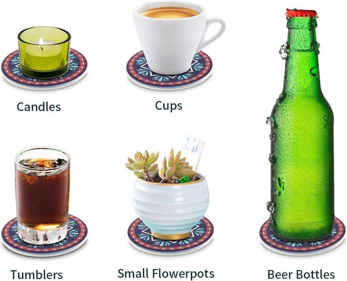 Keramische onderzetters absorberen binnen no-time vocht, als de onderkant van bijvoorbeeld je beker koffie of glas thee vochtig is geworden tijdens het inschenken. Geen last meer van waterkringen op je tafel. Erg praktisch!