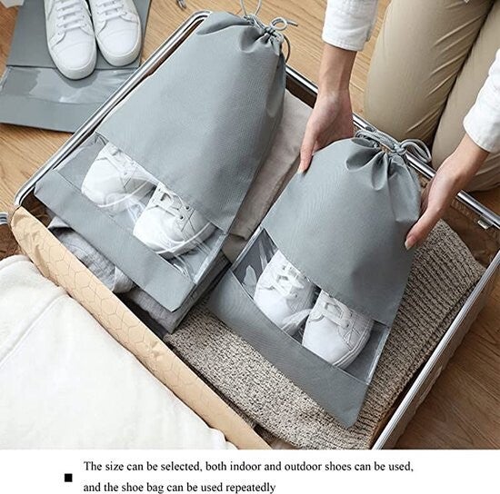 iBright Schoenenzak - 10 Stuks - Extra groot - Organizer - Waterdicht - Met trekkoord - Lichtgrijs - Opberg Tas voor Schoenen & Kleding