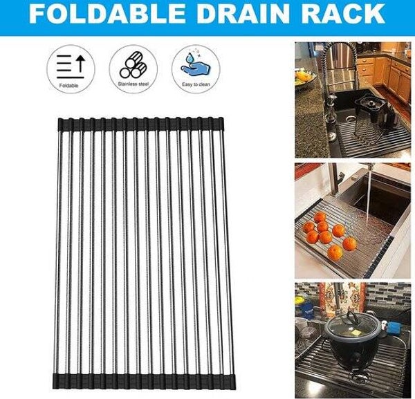 iBright Oprolbare Afdruiprek - Pannen rooster hittebestendig - Afdruiprooster - Pannenonderzetter - RVS Zwart
