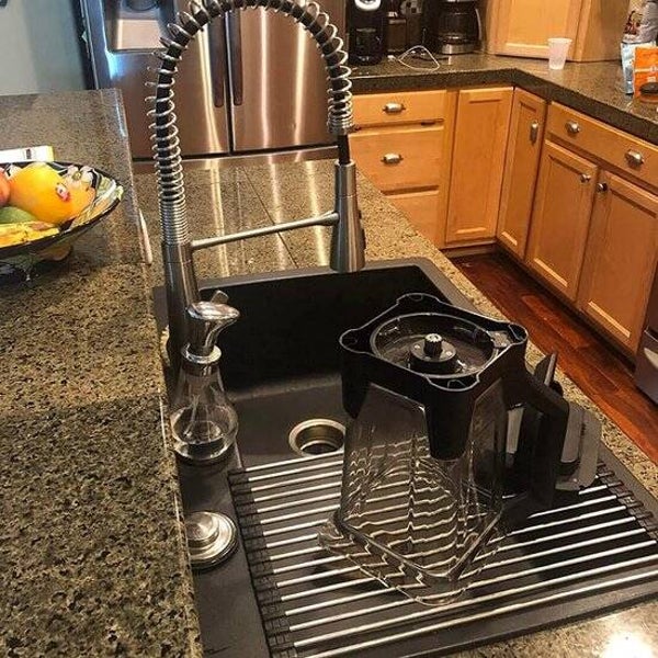 Is je vaat droog? Rol het rekje simpel weg op en berg het eenvoudig op. Zo heb je meer plaats om te koken en ander keukengerei te plaatsen. Bovendien maakt het alles een stuk stijlvoller zonder zo een ouderwets en massief afwasrek.